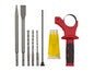 Accessori inclusi: 1 scalpello a punta (25 cm), 1 scalpello piatto (25 cm), 3 punte SDS (Ø 0,6 / 0,8 / 1 x 15 cm), 1 asta di profondità, 50 g di grasso speciale, 1 impugnatura supplementare.